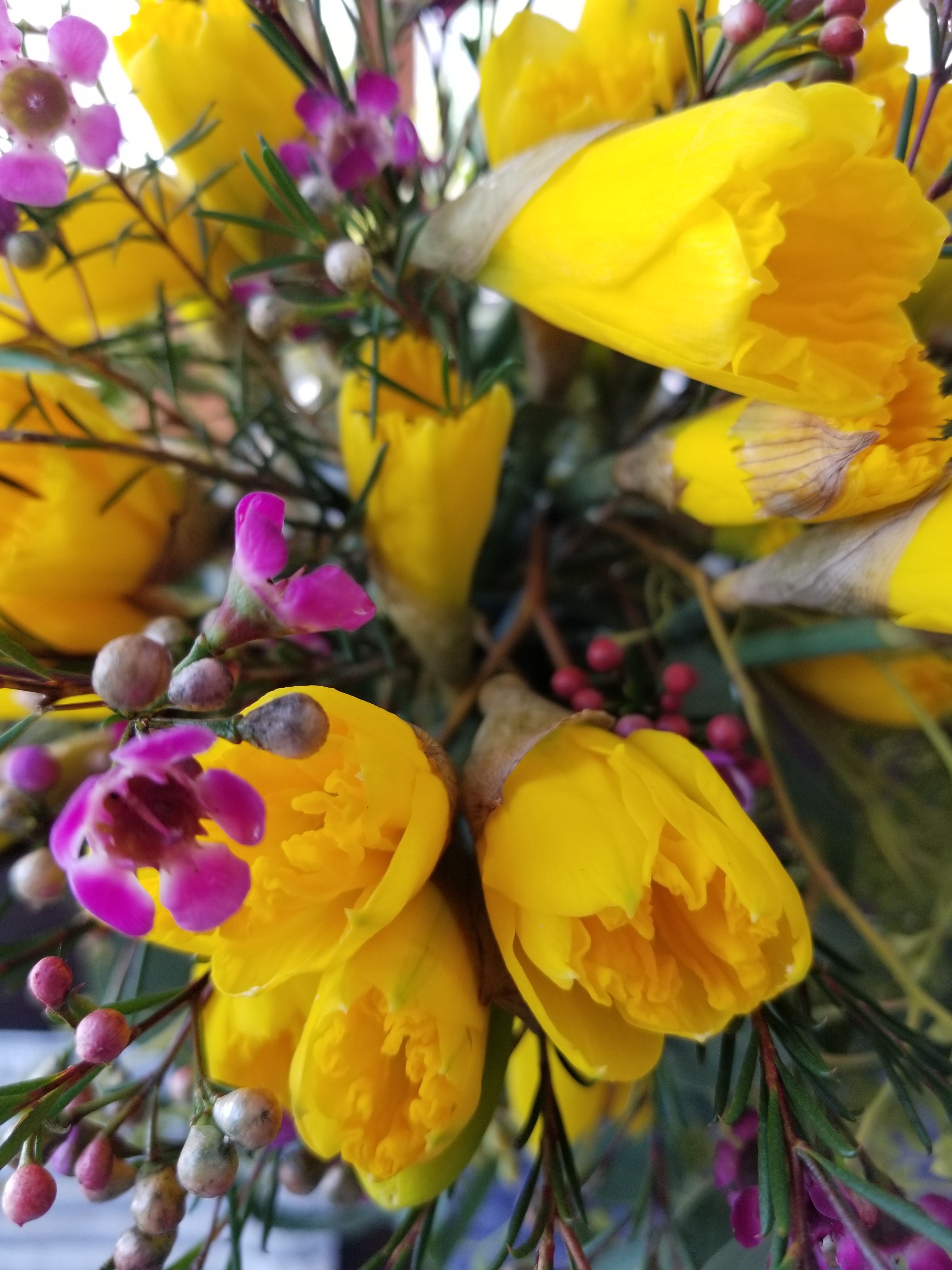 Blooms Used: Daffodils, Wax Flower, Eucalyptus