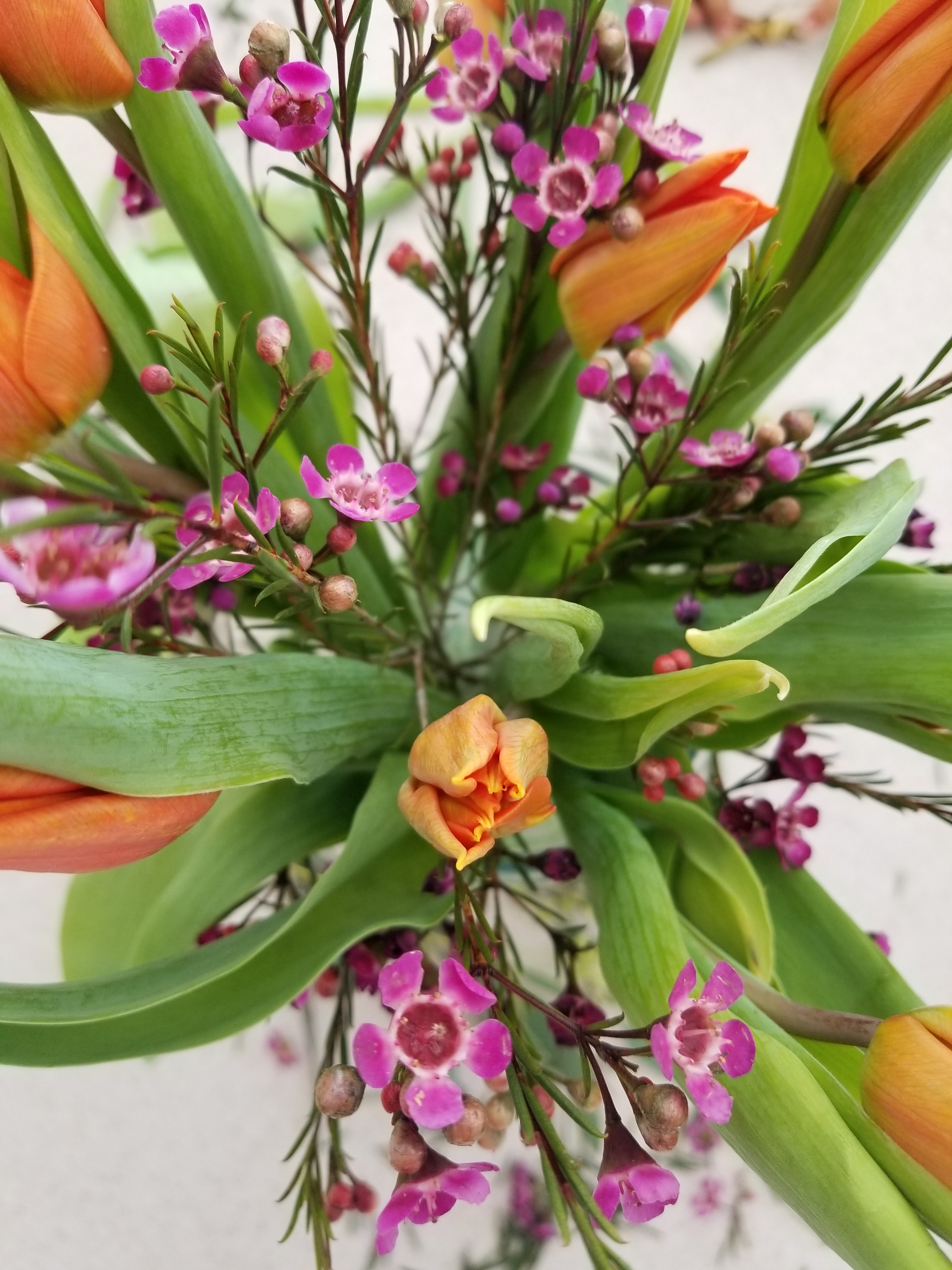 I am now 30 years old and getting back in touch with the more childlike version of myself. The child who existed before the harsh realities of the world started to really sink in and tell you to “Grow Up & Get Ready.” Now I am letting those painful scabs that have gotten quite scaly and crusty just fall off – in the stillness of being with God, loved ones, and myself. One of the ways that I enjoy being in the moment the most is with flowers. Scooping up beautiful blooms from my local grocer, finding a suitable vase, and slowly snipping each stem. Pushing through the fear of not knowing what you are creating, but trusting that a different view of beauty will slowly begin to form as you arrange with intention.