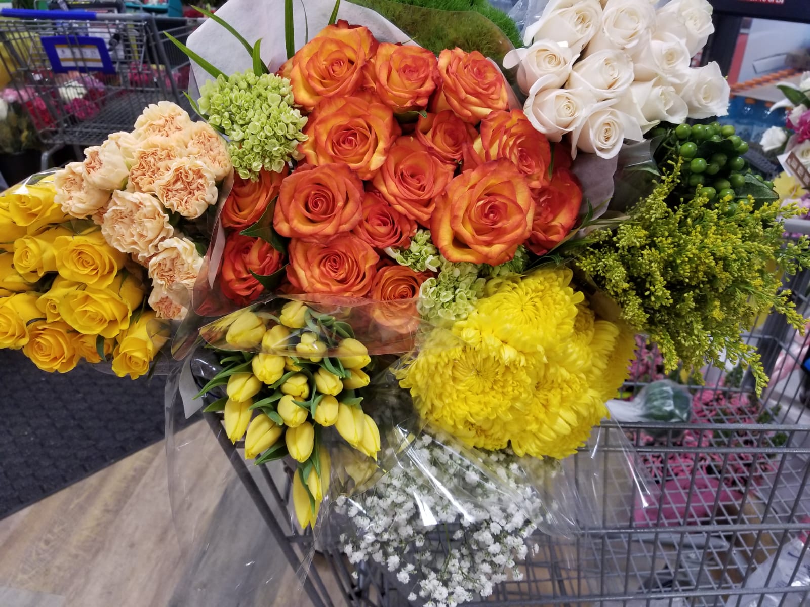 I decided to listen to the man and jump into his bright idea! I went with a color scheme of orange, yellow, and creme! A bright and cheery theme to show these mamacita’s some much deserved love. In a blink of an eye my cart was overflowing with beautiful blooms! Did I put some back? Umm..no of course not – plus my husband told me he was going to pay for the materials!