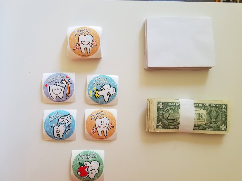 - Drive to the Bank Teller (old school yea I know – but just do it this one time – for the kid(s)) and get Tooth Fairy money ( Dollar amount per tooth x 20 x # of kids). I chose $2 per tooth and have 2 kids. So I ended up needing $ 80 total (40 bucks per kid).