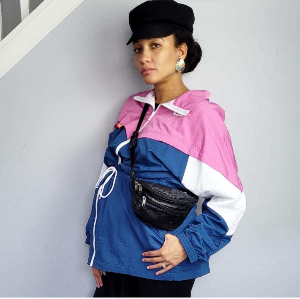 I have a few eye catching track jackets in my closet. The bold colors make me smile so hard that my teeth get dry! I managed to style one of them at 33 weeks pregnant. I hope you leave inspired by this weeks look.