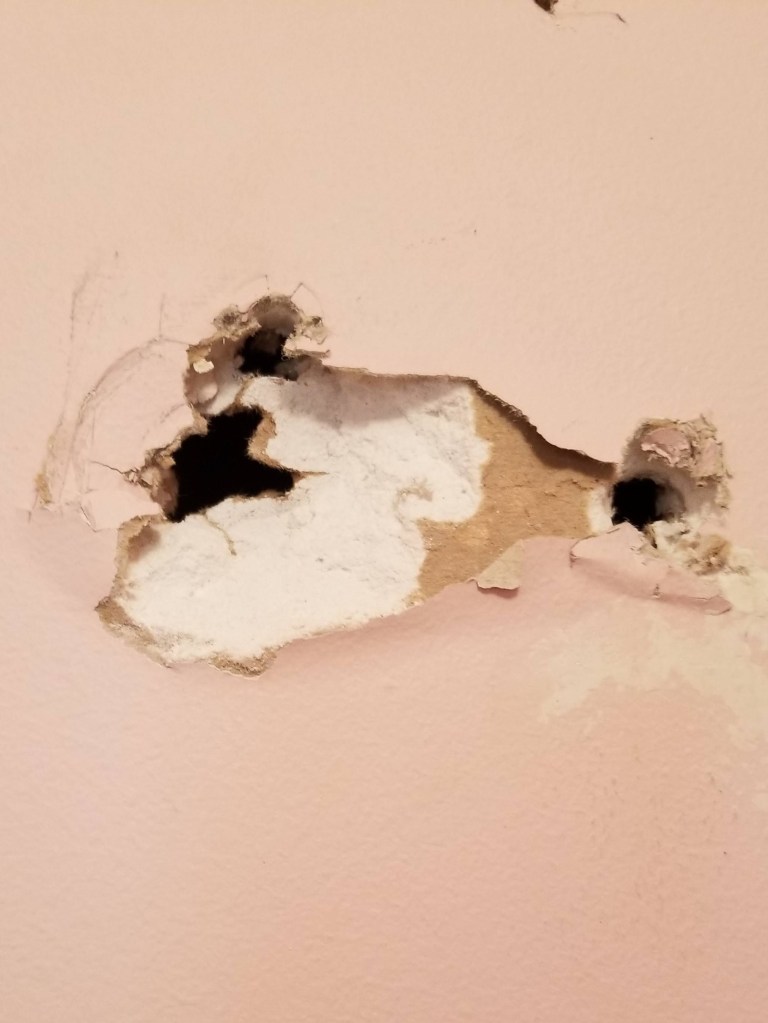 Holes that I had to take the time to fill, patch, and restore.