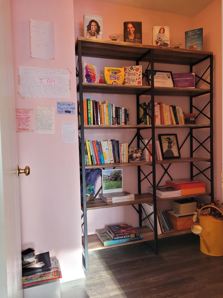 Initially I had planned on utilizing floating shelves to hold the books – it did not work out. Despite having followed the instructions, the shelves kept on leaning and this was without the books on them. I was so annoyed as I had freshly painted the space in a light pink and now had to remove the anchors that’s sole purpose was to sturdily hold the shelves. The anchor screws looked: