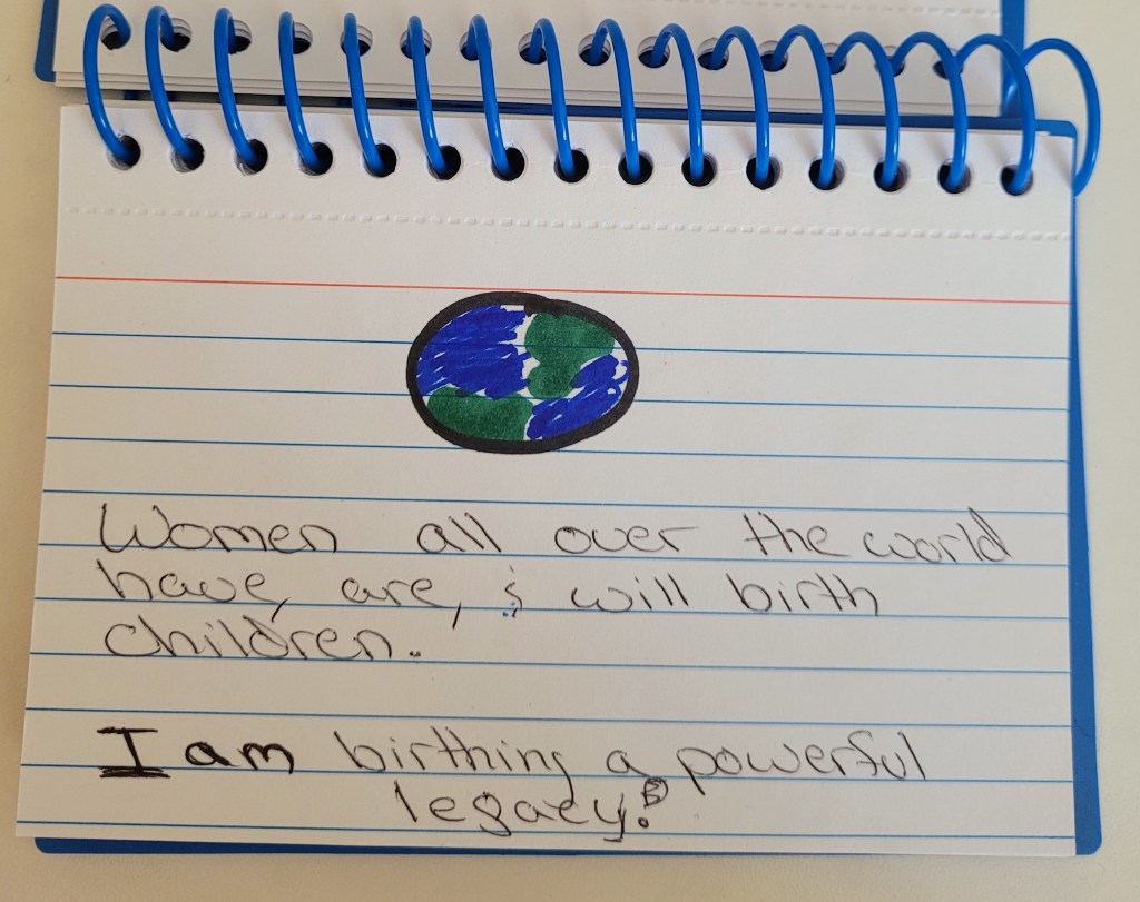 Out of all the things I did that day the one that truly helped get me ready for delivering a human – was writing out the birthing affirmations . The initial plan was to find a list of birthing affirmations online and just print them. I don’t have a home printer so that did not happen. Instead I was given the opportunity to research and write out affirmations by hand. I am so glad it happened this way – as writing them out really got the affirmations to soak into my heart!