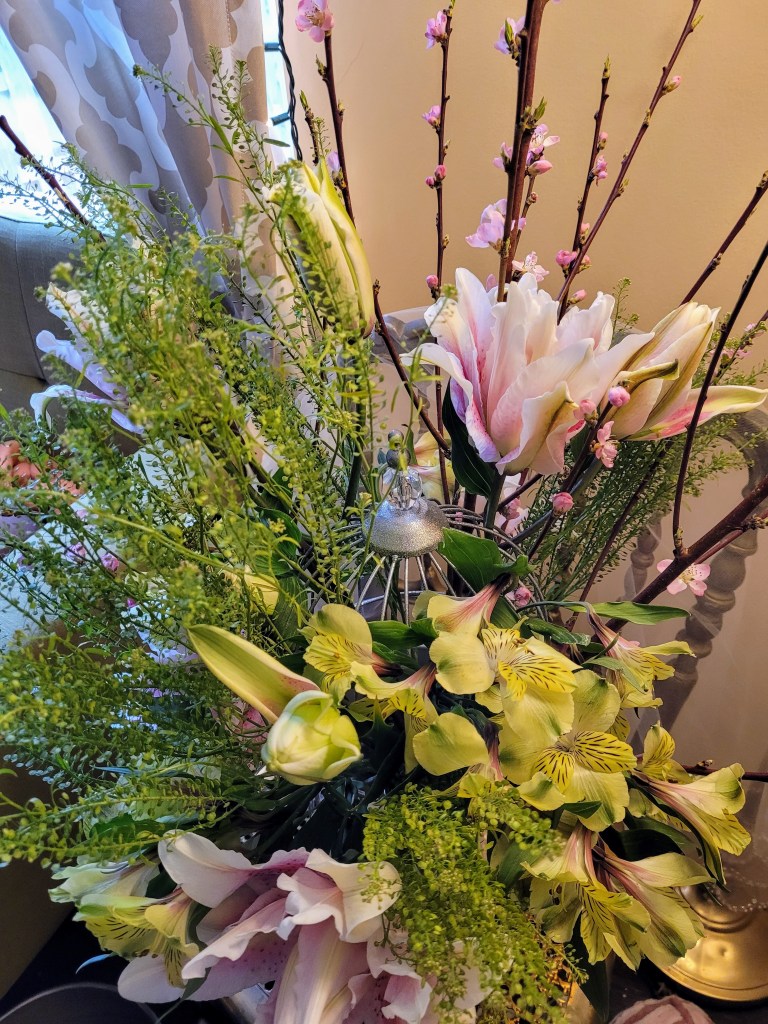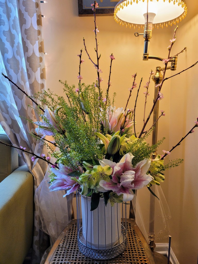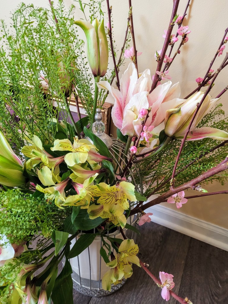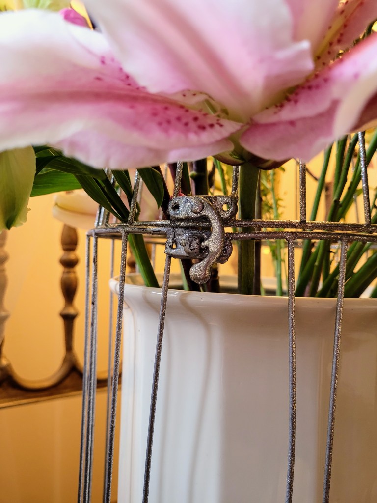 This week I created an arrangement of blooms escaping a locked bird cage.