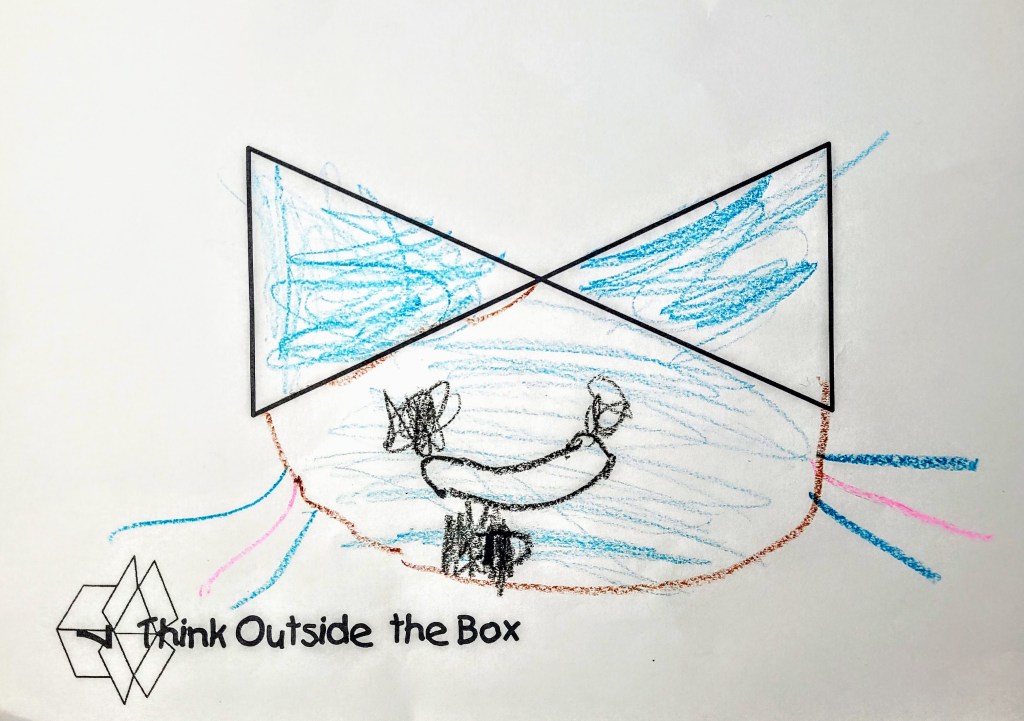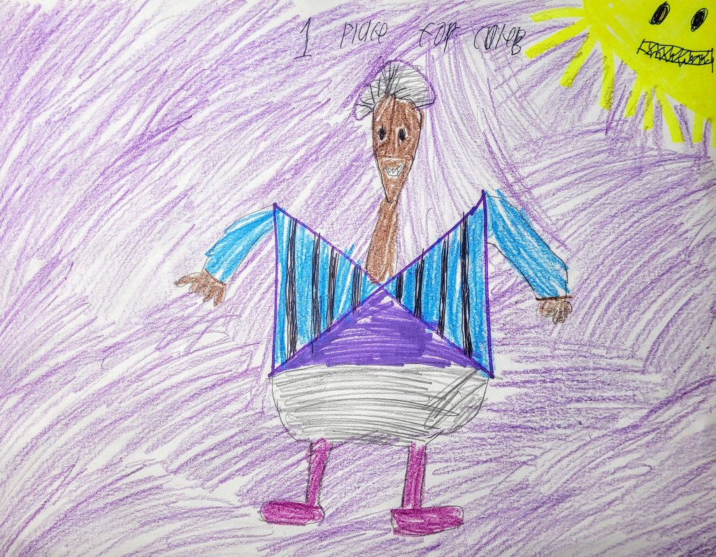 He was given a sheet of paper with 2 triangles on it and challenged to create a picture incorporating those shapes.