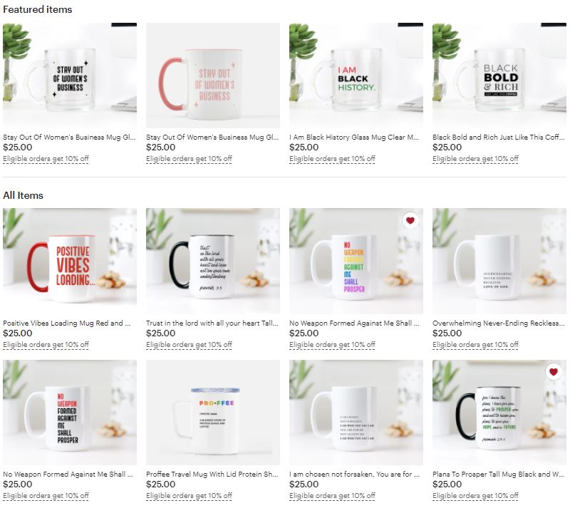 She runs a popular Etsy shop selling mugs with inspirational messages: