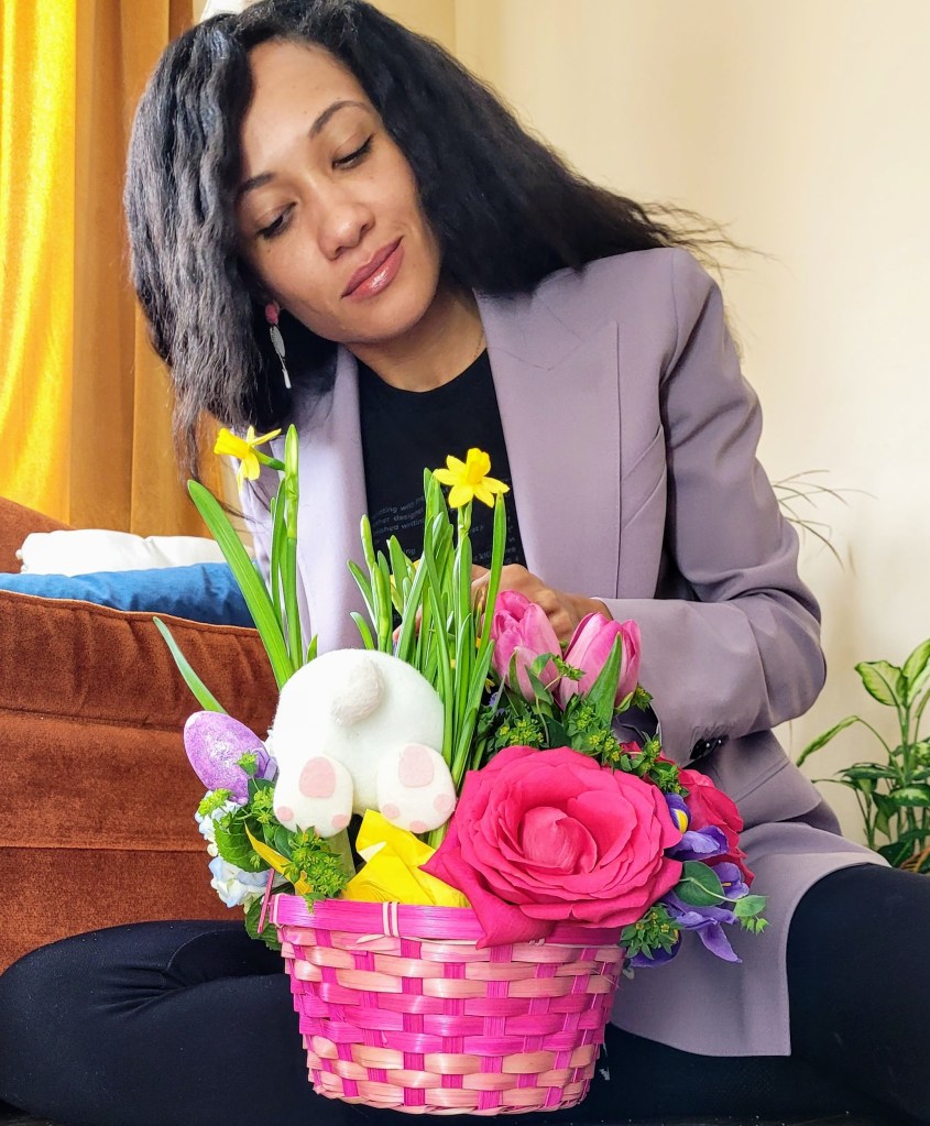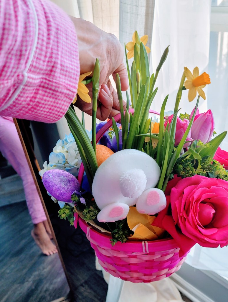 I woke up to find the cutest cottontail and pair of pink paws scurrying through my basket of blooms!