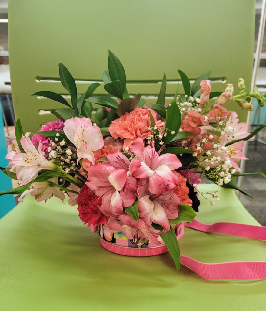 As I stepped into the children’s library, I noticed a woman and young girl studying at a table. I approached them and learned that they were a mother- daughter duo catching up on homeschooling work. I was amazed to see how the Lord moved. Leftover flowers from my floral class with homeschooled students were being used to bless a homeschooling family! Wow!