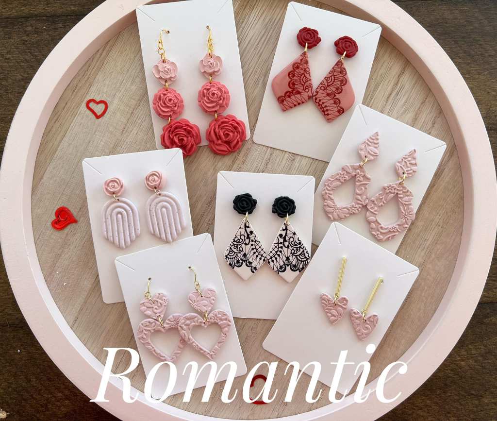“Christmas 2021, I bought a pair of clay earrings. I was impressed that they were handmade and cute, lightweight, so I bought 3 pairs and figured I could give a couple as gifts. Fast forward about 4 months, I was out to lunch with some friends. They noticed the clay earrings I was wearing and commented on how cute they were, and how they would “totally buy some.” Since we’d grown up together, they knew I was artistic and said “Jess, why don’t you make those?”. The thought stuck with me, and I began to think maybe I could. I asked God to bless this desire to make earrings that seemed to get stronger and stronger and had come out of the blue for me. You know those nights when you can’t sleep, and you’re up scrolling your phone against better advice? Well, I started looking up how to make polymer clay earrings and was blown away by all that you can do with this medium. I was so excited to get started. I decided my birthday gift to myself would be to invest in some of the materials and see where it was going to take me. I spent the summer organizing and fixing up a little room in my house to use as a studio. With my daughter going to school full time, I had the space to work coupled with our families need for me to work but all I really wanted to do was create and design these earrings. While I explored other work opportunities, I started doing what I love the most.”