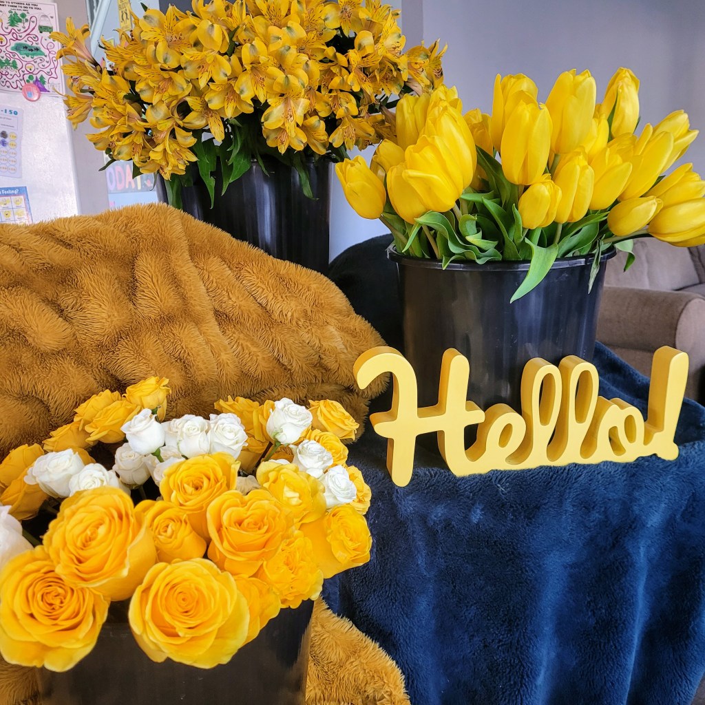 As usual, my toddler assistant, Glory, helped me design the arrangements.