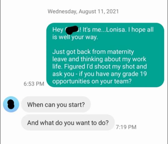 I remembered I was well connected & highly favored. So I texted a decision maker.