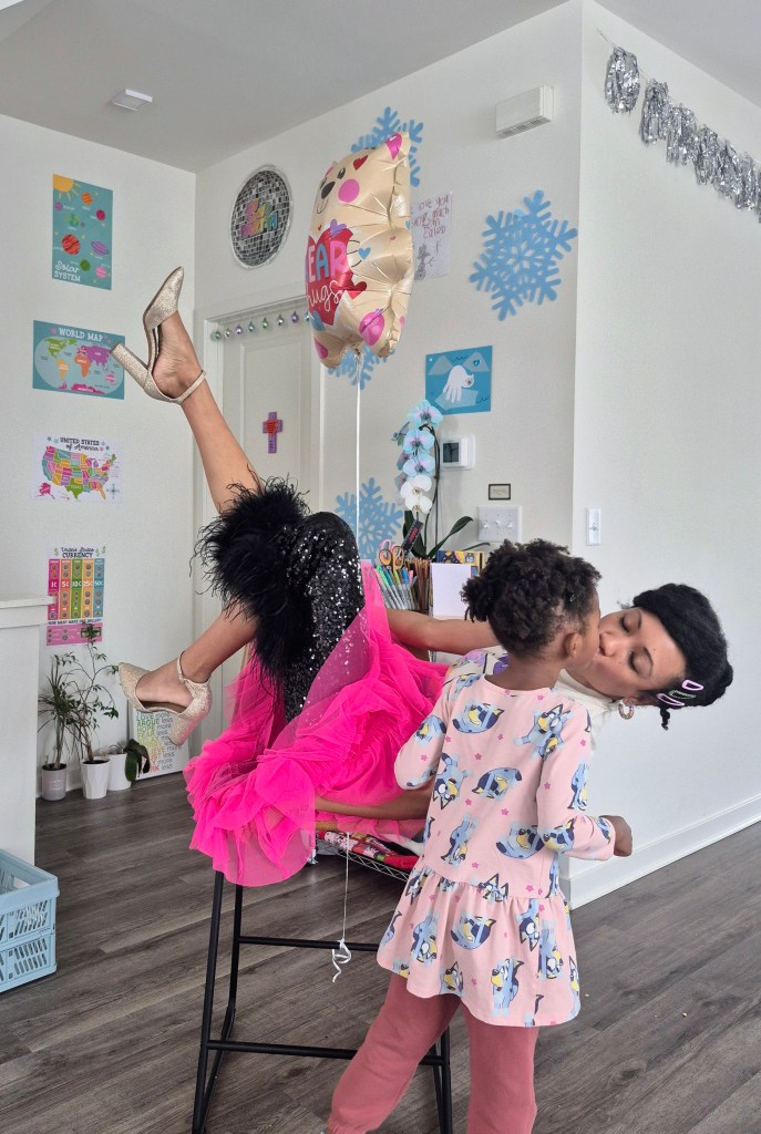 My daughter Queen Glory, 4 years young, puts on what she wants, says “Tadaaaaaaa” to her own self, and sashays along!