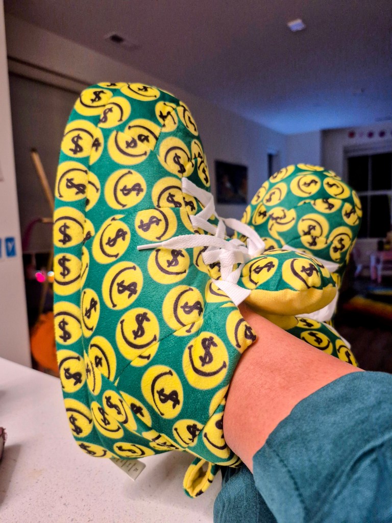 My future holds lots of smiles and financial increase, thus these new smiley face dollar bill slippers.