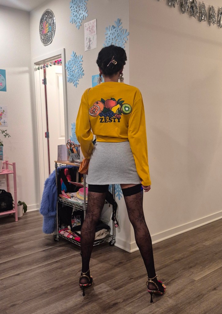 Now, to fully embody this zesty look it’s time to move it, move it! Yep, what’s a cute fit without a modeling dance party?!? If you give this outfit a go, consider playing “Ready or Not” by After Seven.