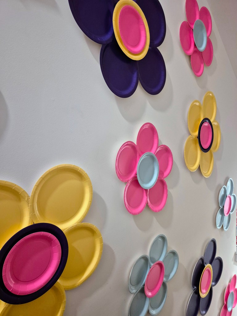Over here we may get frustrated, but we never give up! These flowers finally stuck to the wall with 3M adhesives – the ones you use for picture frames!
