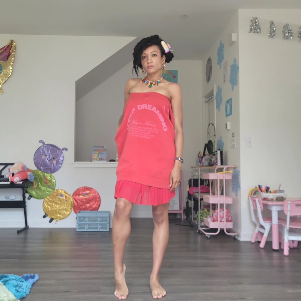 I then tucked the sleeves into their own holes. This was fun cause it made the dress look like it had deep pockets.