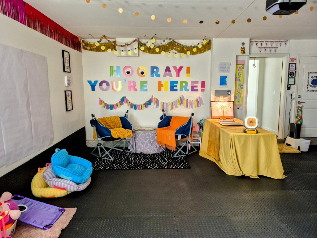 In fact, I woke up in my clothes from the day before and kept them on all day. I didn’t brush my teeth. Didn’t do my hair. Used the last of the toilet paper in one bathroom and didn’t replenish. I sobbed on the floor of The Creation Cave while staring up at my “Hooray! You’re Here!” sign – with googly eyes looking down on me.