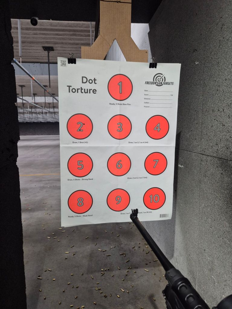 My instructor, John, spent one on one time with me teaching me how to really connect with my gun, Hellcat Pro. My shots had been all over and he told me: