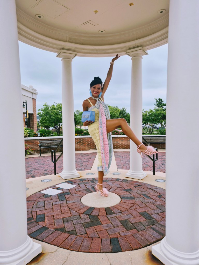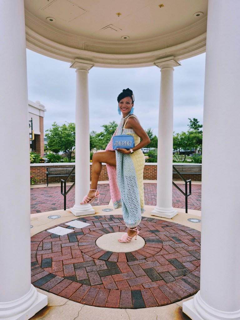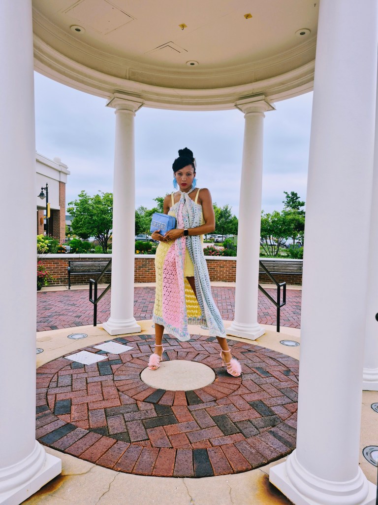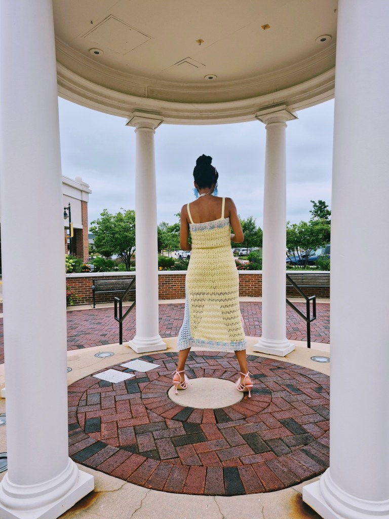 I highly recommend having some kind of snug fitting dress, skirt set, or shorts set underneath your crochet blanket dress…cause there are holes. & your business will be out there – if not.