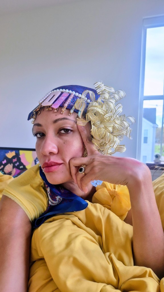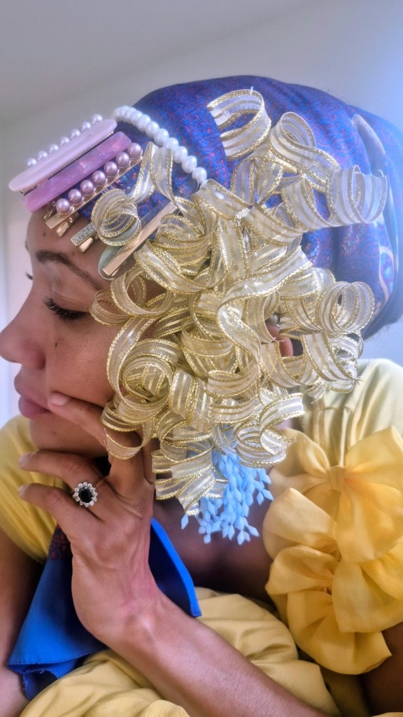 Note: I recommend having the clips at your hairline, not your forehead. I got a dent in my forehead that I thought could be permanent from wearing this look all day. The price of beauty! blah. Still be gentle with yourself.