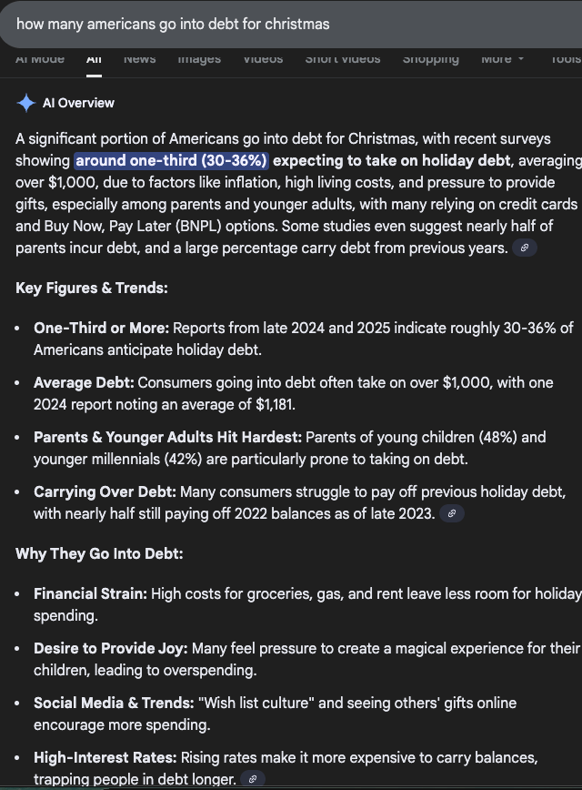 Friend. If you are crossing over into feeling like you must over perform and take on debt – to give gifts -> you are in strong delusion.