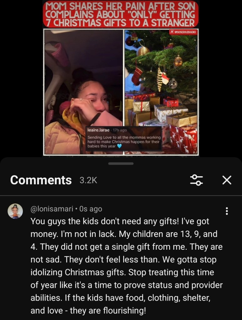 I saw a video of a mother upset about her son sharing with a stranger how he “only received 7” gifts. That baffled me.