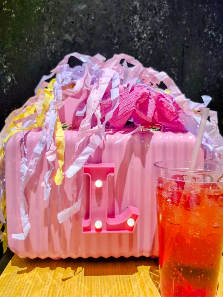 You can make your own “Stay Lit” bag! This pink “brief case” is a cosmetic bag from Walmart! Grab some velcro and a letter light of your choice to adhere it to your bag. More details here.