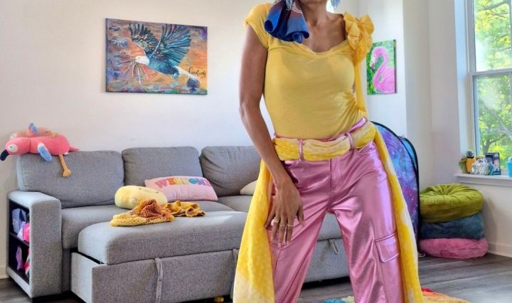 This morning, Queen Glory styled herself in hot pink with: