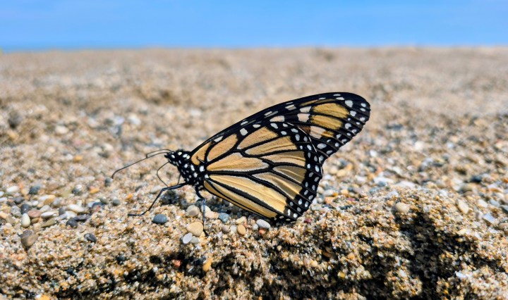 I saw a cute little butterfly fluttering along. Its presence caused me to not rush back into my car. I was observing its flight pattern and dainty wings…when suddenly my eyes landed on a: